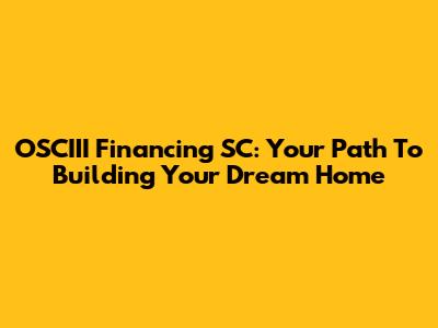 OSCIII Financing SC: Your Path To Building Your Dream Home