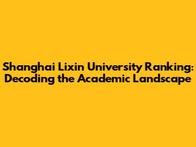 Decoding the Shanghai Lixin University Ranking: What Does It Really Mean?
