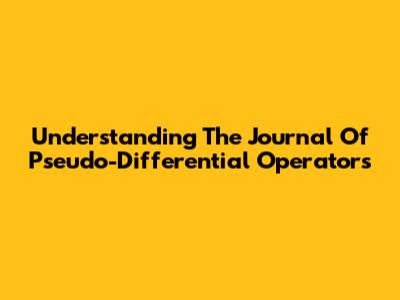 Understanding The Journal Of Pseudo-Differential Operators
