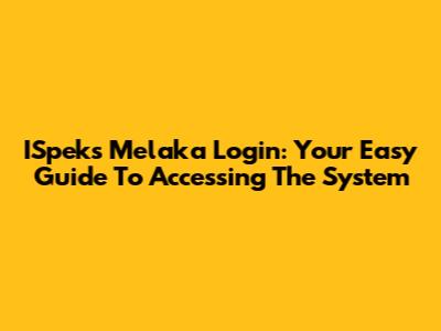 ISpeks Melaka Login: Your Easy Guide To Accessing The System