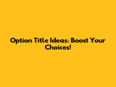 Option Title Ideas: Boost Your Choices!