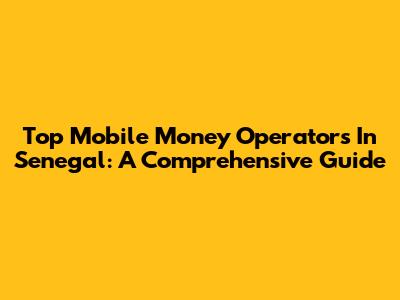Top Mobile Money Operators In Senegal: A Comprehensive Guide