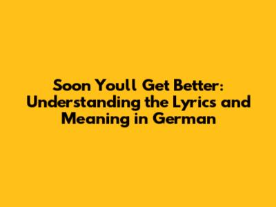 In conclusion, "Soon You'll Get Better" is a masterpiece of emotional storytelling that transcends linguistic boundaries. Whether you listen to it in English or German, the song's message of hope, love, and resilience shines through. By exploring the German translation, we can gain a deeper appreciation for the nuances of language and the power of music to connect us on a human level. So, keep listening, keep exploring, and keep finding solace in the songs that speak to your heart.