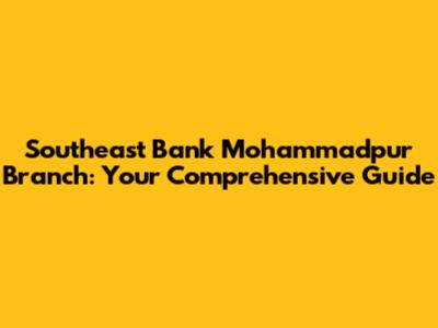 Hey guys! Looking for all the deets on the Southeast Bank Mohammadpur Branch? You've come to the right place! This guide is designed to give you a complete lowdown on everything you need to know, from location and services to contact information and more. Let's dive right in!