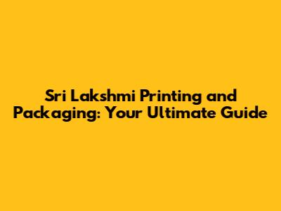 Unveiling Sri Lakshmi Printing and Packaging's Services