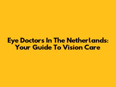 Eye Doctors In The Netherlands: Your Guide To Vision Care