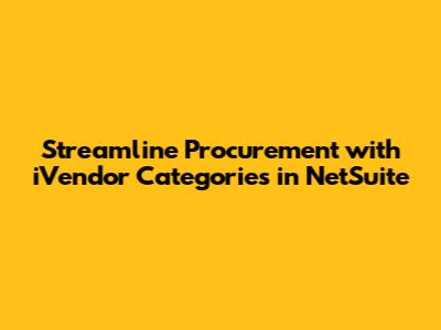 Streamline Procurement With IVendor Categories In NetSuite