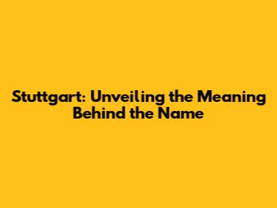 The Cultural Significance of Stuttgart's Name