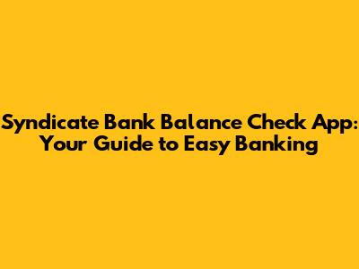 Understanding the Syndicate Bank Balance Check App