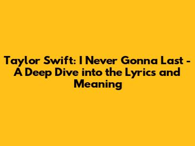 Let's start by dissecting the lyrics of "I Never Gonna Last." Each line, each word, carries a weight of emotion and paints a vivid picture of the story Taylor is telling. The song often uses vivid imagery and specific details to draw listeners into the narrative, making it all the more impactful. We'll look at the specific phrases and how they build up to a larger message. Pay close attention to the subtle cues; she's a master of hiding clues and secrets in her lyrics! Let's explore the themes of hope, despair, and the bittersweet nature of love. The song also includes elements of anticipation and reminiscence. Taylor Swift's ability to craft intricate stories within her songs is one of her greatest strengths as a songwriter, and this track is a prime example. The lyrics are carefully constructed to build emotional momentum, leading listeners through a journey of feelings and revelations. Her songwriting prowess is further demonstrated by the seamless flow of verses and the clever use of rhymes and rhythms.