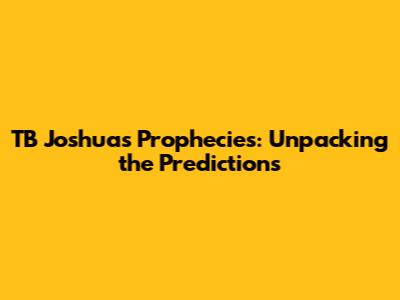 Hey guys! Let's dive into a topic that's been on a lot of minds: the prophecies of TB Joshua. He was a prominent figure, known worldwide for his predictions and spiritual insights. Many people are fascinated by his pronouncements, trying to understand their meaning and impact. This article aims to shed some light on these prophecies, offering a balanced perspective for everyone interested in this intriguing subject. We'll explore what made his prophecies so widely discussed, the types of predictions he made, and how people reacted to them. It's a deep dive, so buckle up!