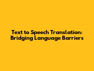 The Future of Text to Speech Translation