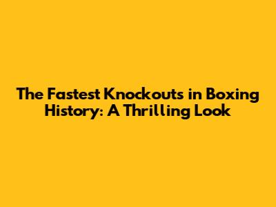 The Records: Fastest Knockouts Ever
