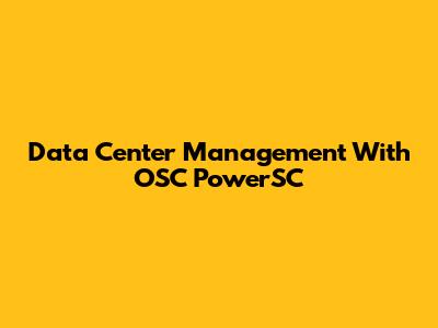 Data Center Management With OSC PowerSC