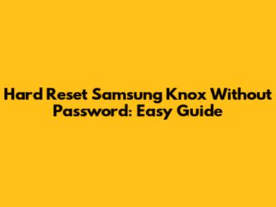Hard Reset Samsung Knox Without Password: Easy Guide