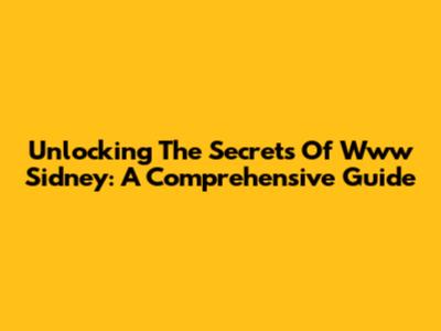 Unlocking The Secrets Of Www Sidney: A Comprehensive Guide