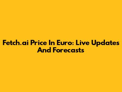 Fetch.ai Price In Euro: Live Updates And Forecasts