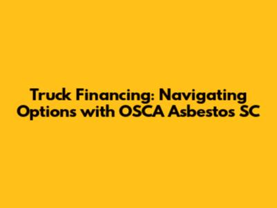 When dealing with specific circumstances like those involving OSCA Asbestos SC, securing truck financing can present unique challenges. OSCA (Occupational Safety and Compensation Act) Asbestos SC refers to situations where businesses or individuals are involved in activities related to asbestos, which is a hazardous material. The presence of asbestos-related concerns can impact financing options due to increased risks and potential liabilities.