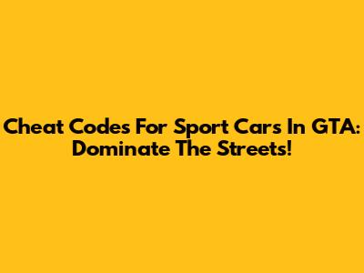 Cheat Codes For Sport Cars In GTA: Dominate The Streets!