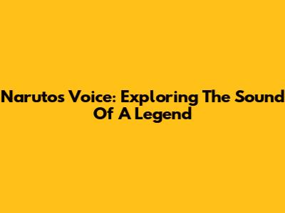 Naruto's Voice: Exploring The Sound Of A Legend