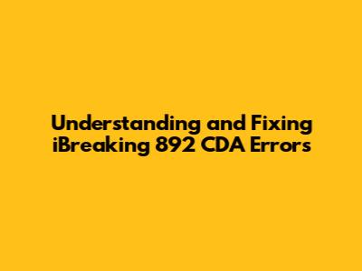 Troubleshooting Steps for the "ibreaking 892 CDA" Error
