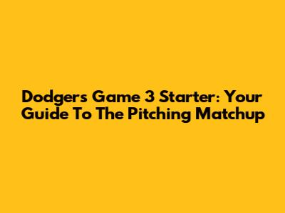 Dodgers Game 3 Starter: Your Guide To The Pitching Matchup