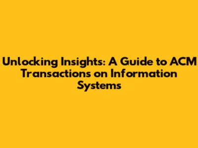 So, why should you care about ACM Transactions on Information Systems? Well, for a few key reasons: