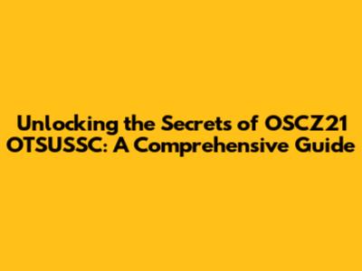 What Exactly Is OSCZ21 OTSUSSC?
