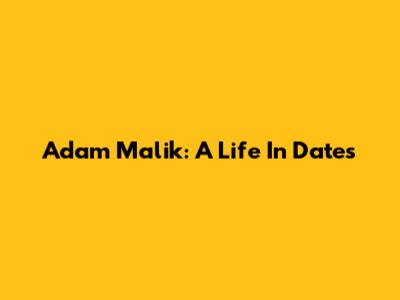 Adam Malik: A Life In Dates