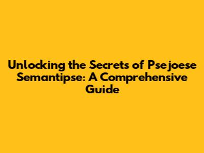 Hey guys! Ever stumbled upon a term that sounds incredibly complex but leaves you scratching your head? Today, we're diving deep into the fascinating world of "psejoese semantipse." Now, I know what you're thinking: "What in the world is that?" Don't worry; we'll break it down together in a way that's both informative and, dare I say, fun!