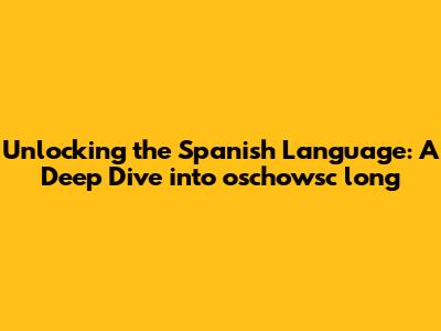 Unlocking The Spanish Language: A Deep Dive Into 'oschowsc Long'