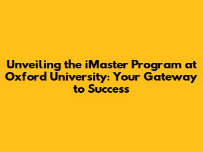 Hey everyone! Are you guys dreaming of a world-class education and a career that truly excites you? Well, if you're looking for a program that can catapult you to the next level, then let's dive into the iMaster program at Oxford University. This isn't just any degree; it's a launchpad for your ambitions, designed to equip you with the skills, knowledge, and connections you need to thrive in today's dynamic world. We'll be exploring everything from what the program entails, the types of people who thrive in it, to how it can shape your future career, so buckle up!