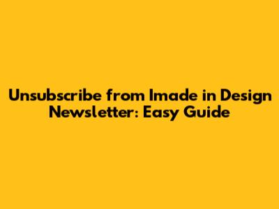 Okay, guys, so you wanna unsubscribe from the Imade in Design newsletter? Here’s the lowdown on how to do it. The easiest method is usually through the email itself. Just open any newsletter from them and scroll down to the bottom. You should see a link that says "Unsubscribe," "Unsubscribe from this list," or something similar. Click that link! This usually takes you to a page where you confirm your unsubscription. Sometimes, they might ask why you're unsubscribing, but you can usually skip this. Another way is to manage your preferences. Some newsletters let you choose what kind of emails you want to receive. Maybe you don't want the daily emails, but you're cool with the monthly ones. Check if Imade in Design offers this option. If you're still having trouble, you can try contacting their customer support. They should be able to manually remove you from the list. Just remember to be polite and provide them with the email address you used to subscribe. That's pretty much it! Unsubscribing should be simple and straightforward. If a company makes it difficult, that's a red flag!