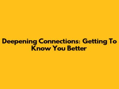 Deepening Connections: Getting To Know You Better