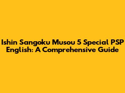 Hey guys! Ever heard of Ishin Sangoku Musou 5 Special for the PSP? If you're a fan of historical action games and haven't jumped into this one, you're seriously missing out. This game, also known as Dynasty Warriors 5 Special in some regions, is a blast from the past, offering a unique blend of historical settings, epic battles, and, of course, tons of fun. Getting your hands on an English version can be a bit tricky these days, but don't worry, we've got you covered. In this guide, we'll dive deep into everything you need to know about Ishin Sangoku Musou 5 Special on the PSP, including gameplay tips, where to find an English version, and why this game still holds up today. So, buckle up, and let's get started!