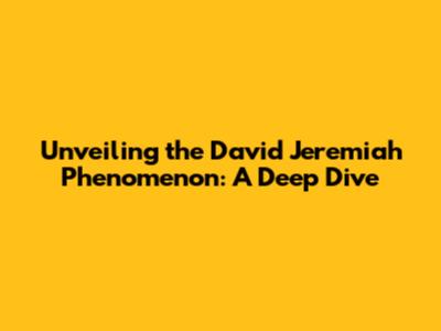 Hey guys! Ever wondered about David Jeremiah and why he's such a big deal? Well, you're in the right place! We're going to dive deep into the world of David Jeremiah, exploring his background, his impact, and what makes him a prominent figure in contemporary Christianity. This journey will cover everything from his early life to his current endeavors, giving you a comprehensive understanding of the man, the ministry, and the message. Buckle up, because we're about to embark on an insightful exploration of one of the most influential voices in modern Christianity. The goal is to provide you with a well-rounded perspective, touching upon his teachings, his influence, and how he has touched countless lives through his sermons, books, and media presence. You'll get to learn about the significance of David Jeremiah's work in the context of broader theological trends and cultural shifts. It's like a backstage pass to understanding a key figure in modern religious thought, so let's get started. Get ready to explore the life and work of David Jeremiah, and discover the impact he has made on the world. This is not just about facts and figures; it's about the heart and soul of a man dedicated to sharing his faith. Let’s jump right in, shall we?