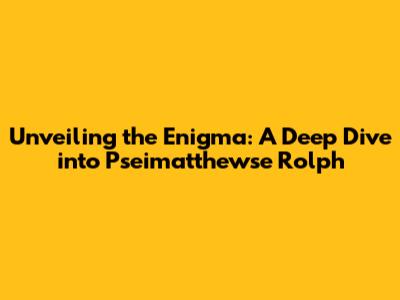 Hey guys, let's talk about something intriguing: Pseimatthewse Rolph. It's a name that might sound like a riddle wrapped in a mystery, and honestly, that's kind of the point! In this article, we're going to dive headfirst into the world of Pseimatthewse Rolph. We'll explore what it is, why it matters, and try to unravel some of the mysteries surrounding it. So, buckle up, because we're about to embark on a journey of discovery. Understanding Pseimatthewse Rolph isn't just about knowing a name; it's about understanding a concept, a potential trend, or even a hidden corner of knowledge. As we go through this, think of it as a treasure hunt where the treasure is information and the map is this article. Let's dig in and see what we can find, shall we? This exploration will cover various aspects, from its origins and possible meanings to its impact and significance. We will analyze the available information, looking at different perspectives and interpretations to present a well-rounded understanding. It's like putting together pieces of a puzzle, where each piece reveals more about the complete picture. The ultimate goal is to equip you with the knowledge to understand Pseimatthewse Rolph better. Whether you're a curious individual or a researcher, this exploration will provide valuable insights into this fascinating subject. The intention is to make it easy to understand and to offer a detailed overview.