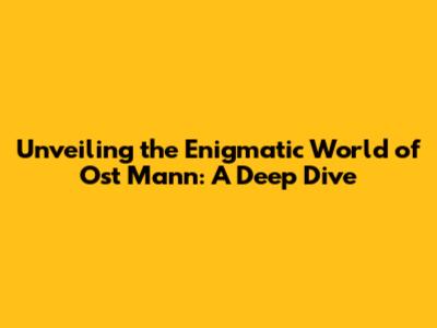 Hey guys! Ever heard of Ost Mann? If not, you're in for a treat! Let's dive deep into the fascinating world of Ost Mann and uncover what makes it so special. We'll explore its origins, its influence, and why it continues to captivate so many people. Buckle up, because we're about to embark on an exciting journey!