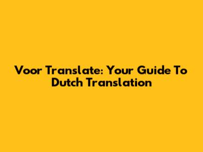Voor Translate: Your Guide To Dutch Translation