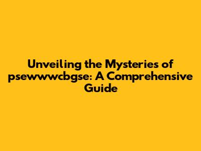 Demystifying psewwwcbgse: What Exactly Is It?