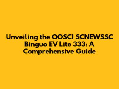 Diving into the OOSCI SCNEWSSC Binguo EV Lite 333's Core