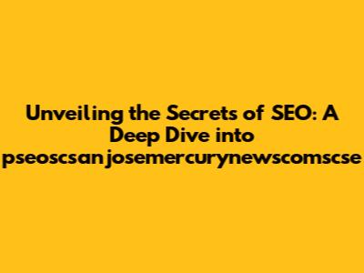 Hey everyone, let's talk about something super important for anyone trying to get their website noticed: SEO! It stands for Search Engine Optimization, and basically, it's all about making your website friendly to search engines like Google. Think of it like this: you've got a fantastic store (your website), but nobody knows where it is. SEO is the map and the sign that helps people find you. Today, we are going to dive deep into a specific aspect of SEO and explore how we can better understand how to optimize your site. We're going to use a specific example, and we will talk about "pseoscsanjosemercurynewscomscse". It may seem like a mouthful, but we'll break it down and see how it works. So, grab a coffee, sit back, and let's get started. By the end, you'll have a much better understanding of what SEO is all about and how to make it work for you. Let's start with the basics, shall we? This first section will give us a strong basis of what SEO is all about. We'll explore the main concepts. We'll clarify the most common misconceptions. We will also talk about how important SEO is for your business.