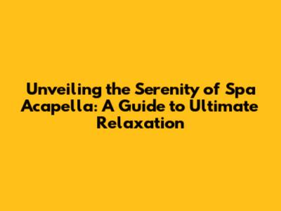 Understanding Spa Acapella: What's the Deal?
