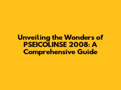 This will give you a comprehensive understanding of the importance of PSEICOLINSE 2008.