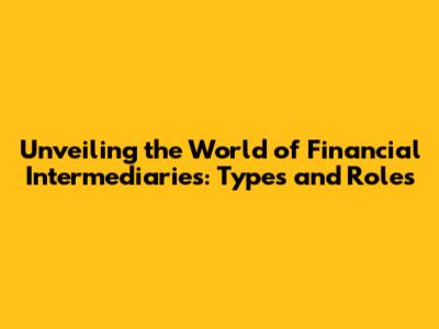 Types of Financial Intermediaries: A Diverse Landscape