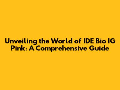 What Exactly is IDE Bio IG Pink?