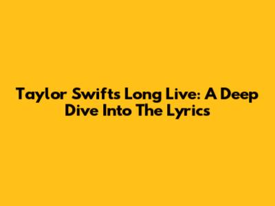 Taylor Swift's Long Live: A Deep Dive Into The Lyrics
