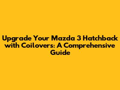 Hey guys! Ever thought about giving your Mazda 3 Hatchback a serious performance and style upgrade? Well, coilovers are the way to go! They're like the ultimate suspension upgrade, offering a ton of benefits that'll transform how your car looks, handles, and performs. This guide is all about coilovers for Mazda 3 hatchbacks, breaking down everything you need to know, from what they are to how to choose the right set and get them installed. Let's dive in and see how we can make your ride even more awesome!