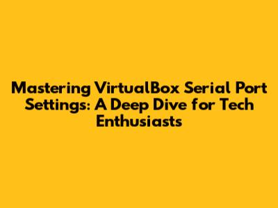 Hey guys! Ever found yourself wrestling with VirtualBox serial port settings and wishing for a clearer guide? You're in the right place! In today's tech landscape, understanding how to configure virtual machine hardware, especially something as crucial as serial ports, can make a world of difference for developers, testers, and anyone dabbling in legacy systems or specific hardware interactions. This article is your ultimate companion, breaking down everything you need to know about VirtualBox serial ports, from the basics to advanced configurations. We'll ensure you can connect your virtual machines to the real world, or at least to another machine, through these essential communication channels. Let's get this virtual party started!