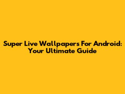 Super Live Wallpapers For Android: Your Ultimate Guide